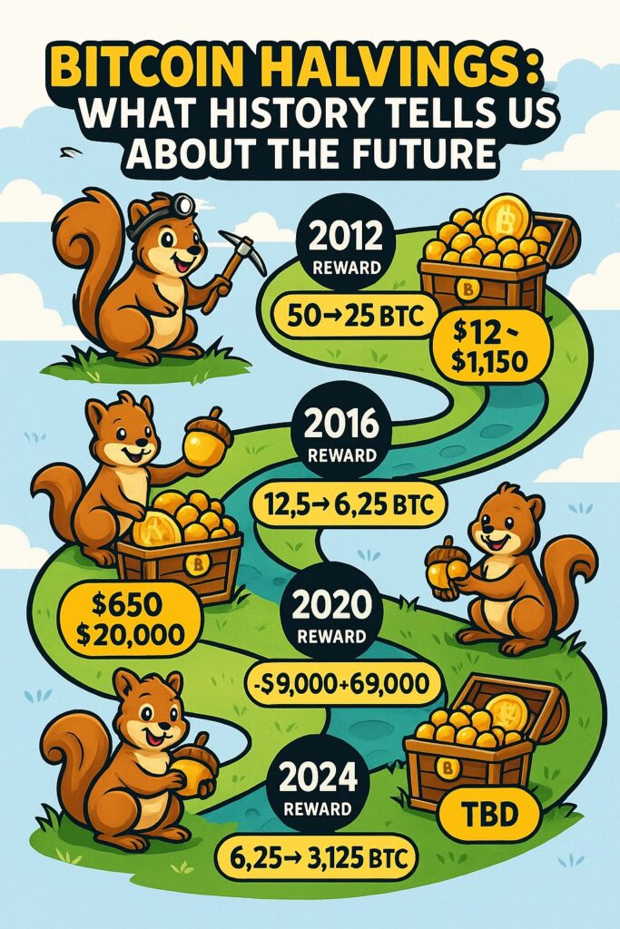 At Florida Mining Solutions, we think halvings are like seasons in the Bitcoin forest. Each one changes how squirrels (miners) collect nuts (rewards) — and history shows that while the short term can feel tough, the long-term results are powerful.