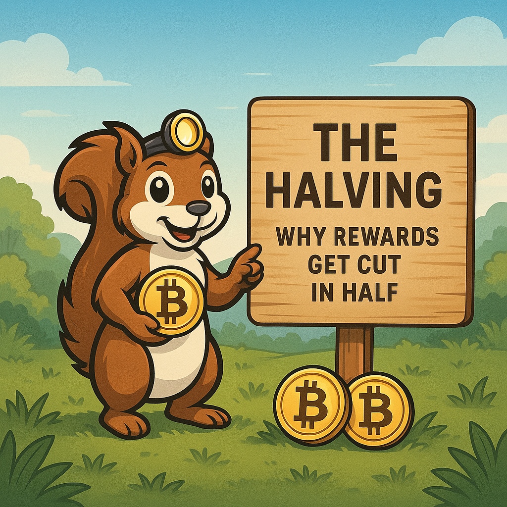 At first glance, that might sound discouraging for miners. But in reality, the halving is one of the most important reasons Bitcoin holds long-term value. Let’s explore why, with a little help from our mascot, Satoshi Squirrel. 🐿️